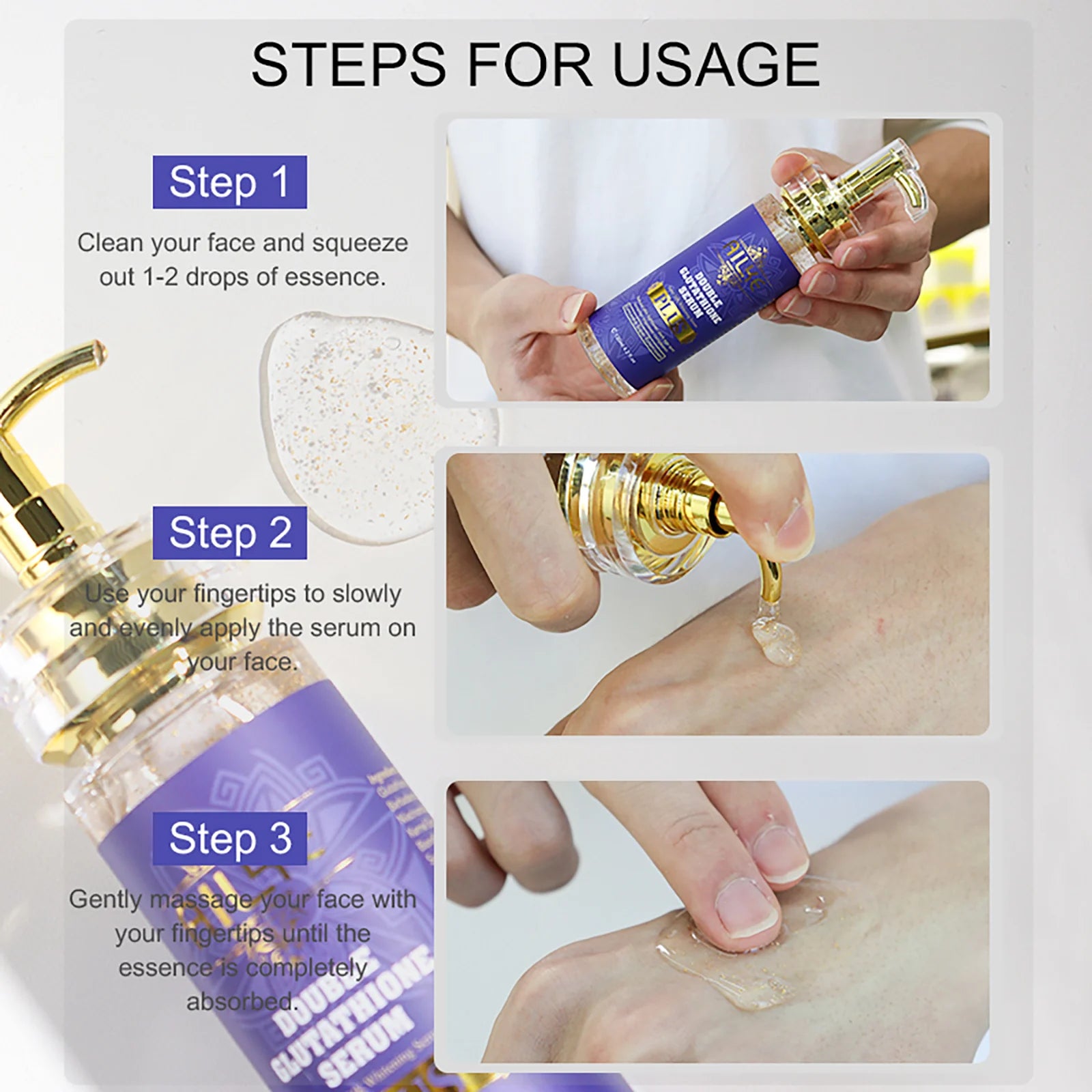 - 24K Gold + Double Glutathione – Natural skin lightener and powerful antioxidant to brighten and rejuvenate skin.