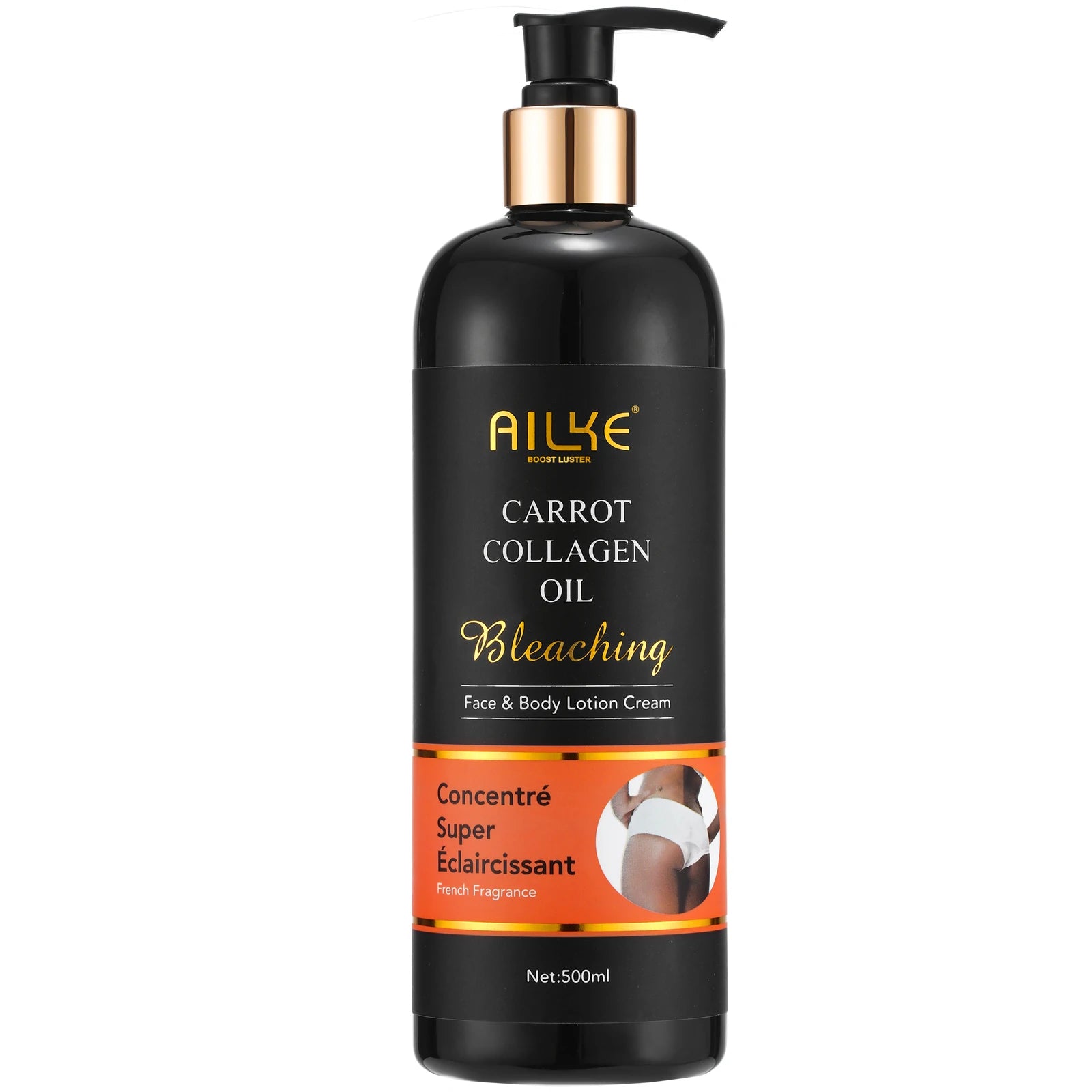 Carrot Oil & Collagen Bleaching Body Lotion (500ml / 17.6 fl oz) is a luxurious body lotion designed to brighten, even out, and deeply moisturize your skin. Enriched with collagen, carrot oil, multi-vitamins, and glutathione, it helps reduce dark spots, smoothen skin texture, and restore a healthy, radiant glow. Ideal for daily use, this lotion nourishes your skin from the inside out, leaving it soft, supple, and luminous.